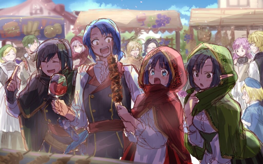 ラシルとシルフィはお忍びということもあり、すっぽりかぶっていますが、ユグドは着ない派、ゼロは着るけど頭は出しとく派、みたいなちょっと違いをつけてみたりしております。