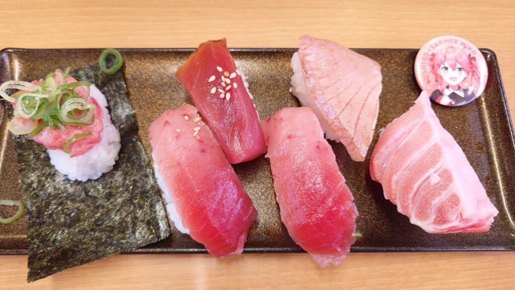 缶バッジはスシローのコスチュームのみこちでした。本当は釣りをしているみこちの缶バッジが良かったのですが、6貫で1,300円というなかなかのお値段だったので1回だけにして、残りはピック狙い。