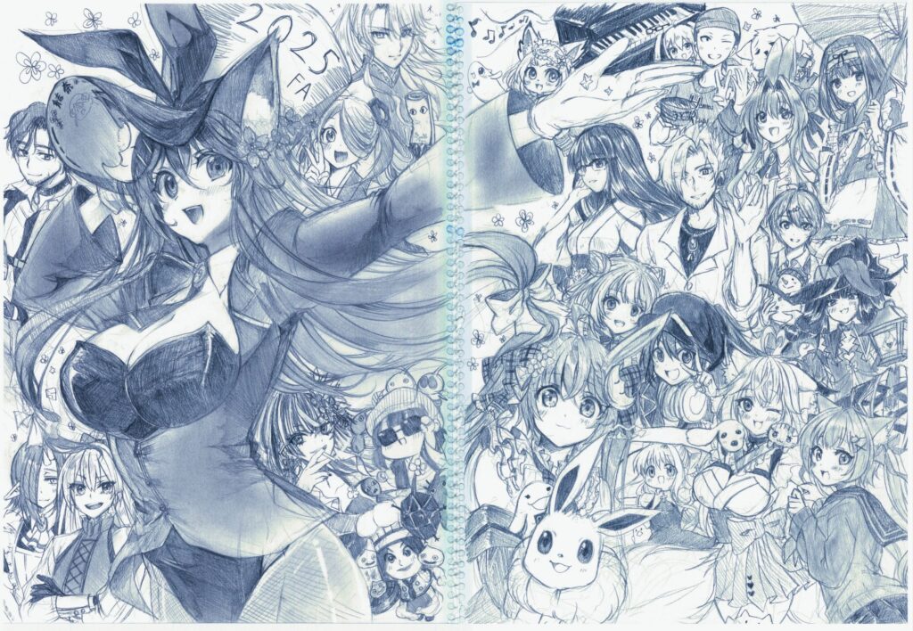 今年は、いろんな人に支えられて創作を続けることができたなぁと実感した年だったので、今年お世話になった方々へ向けてファンアート集合絵を描きました。