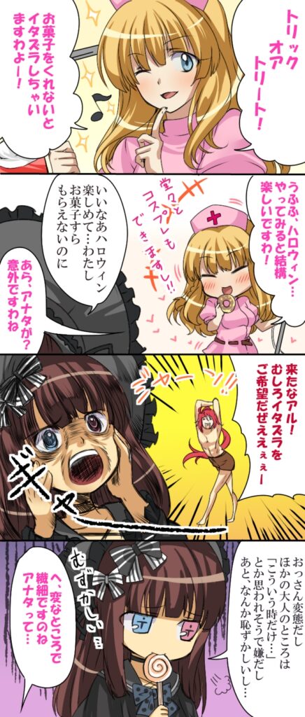 ハロウィン4コマ詰め合わせ 2026年1月25日 最終更新日時 : 2026年1月25日 yuina #アリエッタ #アルフィミィ #ジオ #セシア #ミルフィーユ #ロウ #文男 #晋太郎 #由妃乃 #紅葉 #茉莉子