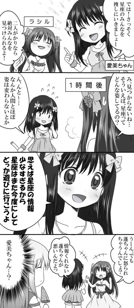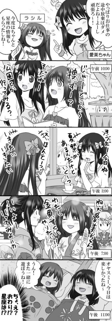 今はサイト閉鎖されておられますが、「花火桜」の百日紅さん宅の愛美ちゃんとコラボさせていただいた時の4コマです。
